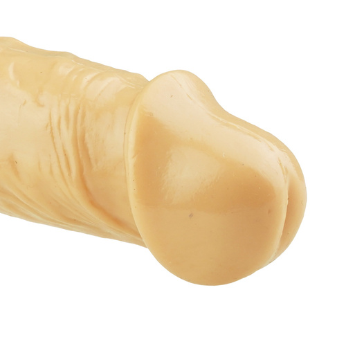 Realistyczny kształt, jędrny, elastyczny w dotyku, sprawdzający się w masażu ścianek pochwy jak i anusa.